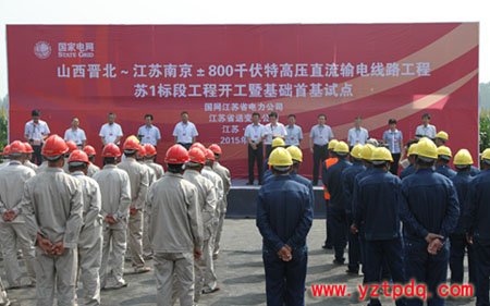 8月26日上午10時,山西晉北—江蘇南京±800千伏特高壓直流輸電線路工程蘇1標(biāo)段工程開工暨基礎(chǔ)施工首基試點活動在徐州豐縣趙莊鎮(zhèn)舉行。這標(biāo)志著首條由國網(wǎng)江蘇省電力公司負責(zé)建設(shè)管理的特高壓直流線路工程正式開建。