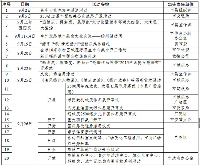 揚(yáng)州2500周年城慶日適逢國(guó)慶假期,揚(yáng)州全市各城建大項(xiàng)目陸續(xù)收官,對(duì)外開放。各種活動(dòng)將精彩上演!一起來看看!